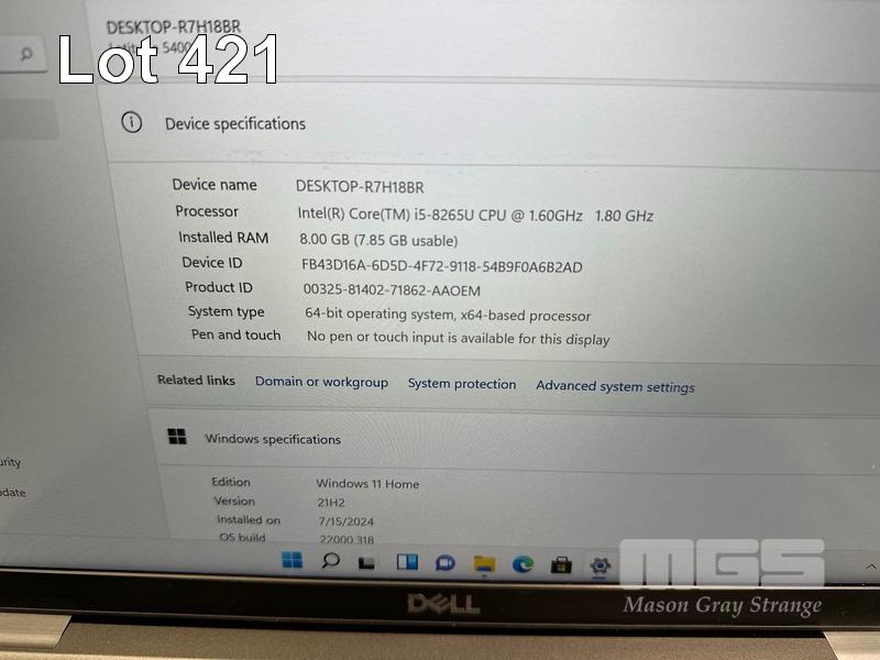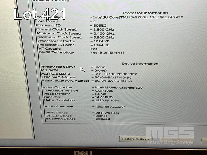 LAPTOP, DELL LATITUDE 5400, CORE i5 8265U (8TH GEN) @ 1.6GHz, 8GB DDR4 RAM, 512GB NVMe M.2 SSD, 14" WIDESCREEN (1920x1080), INTEL UHD GRAPHICS 620, Wi-Fi, BLUETOOTH, WINDOWS 11 HOME INSTALLED & POWER SUPPLY (NOTE: NO BATTERY, MARKS ON SCREEN) S/N:4CQB3X2