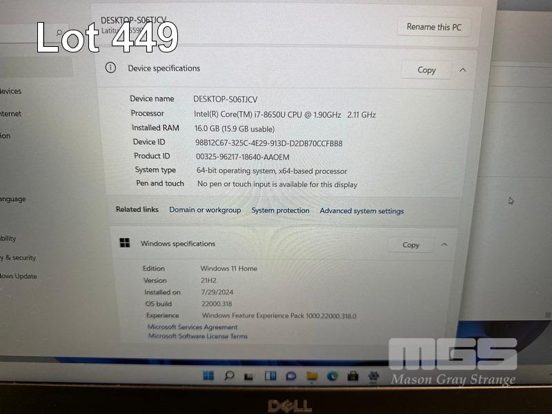 LAPTOP, DELL LATITUDE 5590, CORE i7 8650U (8TH GEN) @ 1.9GHz, 16GB DDR4 RAM, 512GB M.2 SSD, 15.6" WIDESCREEN (1920x1080), INTEL UHD GRAPHICS 620, Wi-Fi, BLUETOOTH, WINDOWS 11 HOME INSTALLED (NO POWER SUPPLY) S/N:3MR9LQ2