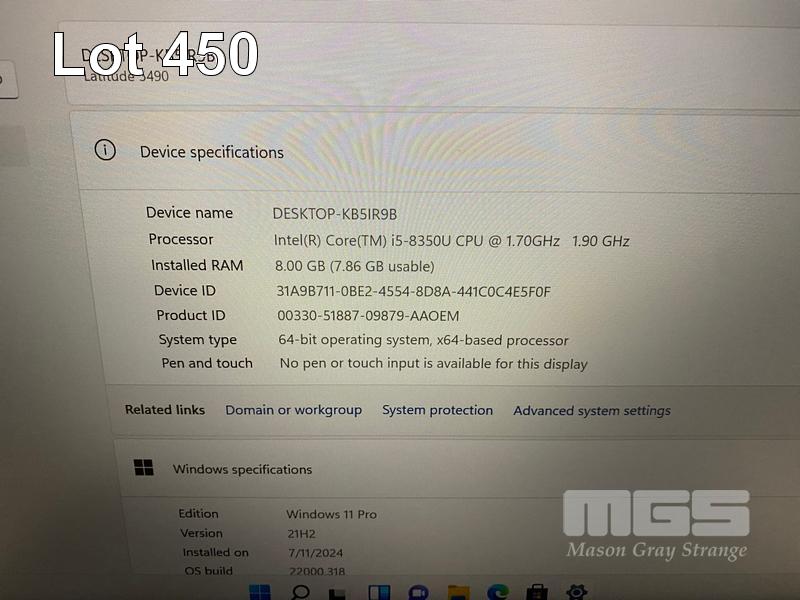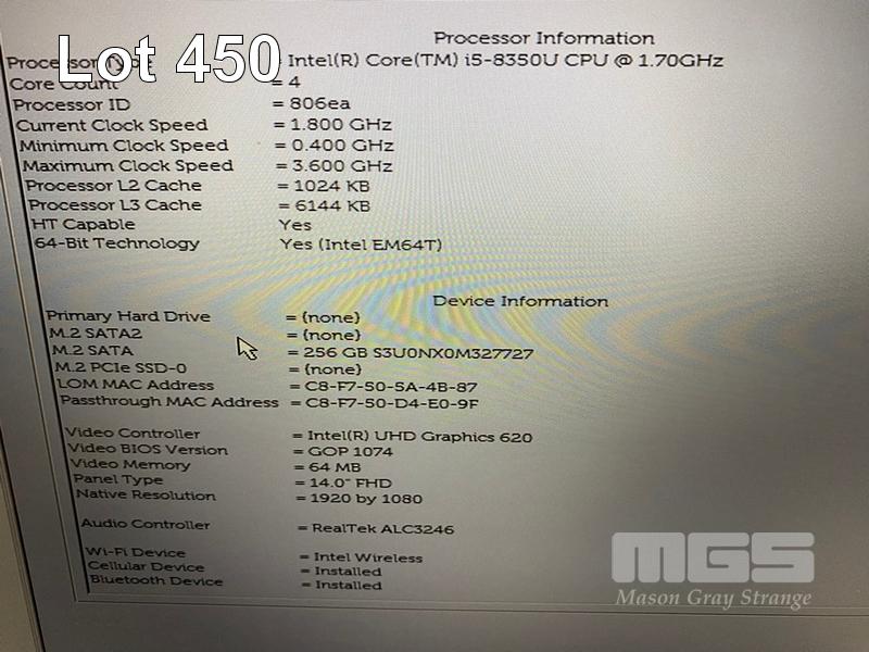 LAPTOP, DELL LATITUDE 5490, CORE i5 8350U (8TH GEN) @ 1.7GHz, 8GB DDR4 RAM, 256GB M.2 SSD, 14" WIDESCREEN (1920x1080), INTEL UHD GRAPHICS 620, Wi-Fi, CELLUAR, BLUETOOTH, WINDOWS 11 PRO INSTALLED (NO POWER SUPPLY) S/N:1375YT2