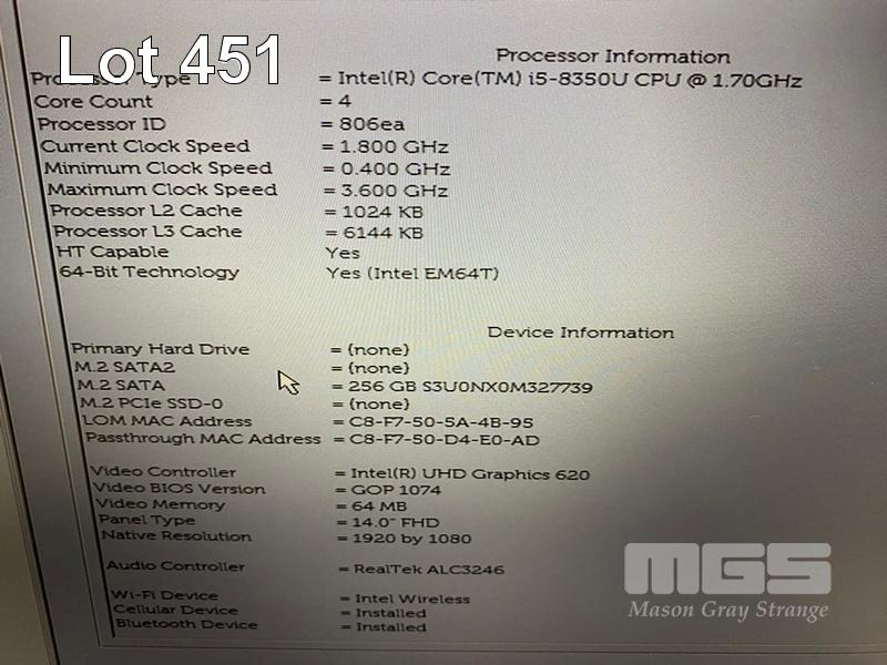 LAPTOP, DELL LATITUDE 5490, CORE i5 8350U (8TH GEN) @ 1.7GHz, 8GB DDR4 RAM, 256GB M.2 SSD, 14" WIDESCREEN (1920x1080), INTEL UHD GRAPHICS 620, Wi-Fi, CELLUAR, BLUETOOTH, WINDOWS 11 PRO INSTALLED (NO POWER SUPPLY) S/N:5375YT2