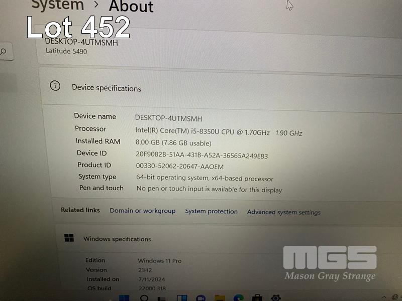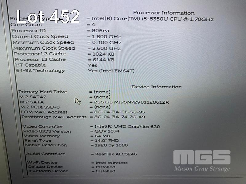 LAPTOP, DELL LATITUDE 5490, CORE i5 8350U (8TH GEN) @ 1.7GHz, 8GB DDR4 RAM, 256GB M.2 SSD, 14" WIDESCREEN (1920x1080), INTEL UHD GRAPHICS 620, Wi-Fi, CELLUAR, BLUETOOTH, WINDOWS 11 PRO INSTALLED (NO POWER SUPPLY) S/N:J78R1X2