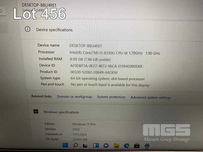 LAPTOP, DELL LATITUDE 5490, CORE i5 8350U (8TH GEN) @ 1.7GHz, 8GB DDR4 RAM, 256GB M.2 SSD, 14" WIDESCREEN (1920x1080), INTEL UHD GRAPHICS 620, Wi-Fi, CELLUAR, BLUETOOTH, WINDOWS 11 PRO INSTALLED (NO POWER SUPPLY) S/N:7Q2R1X2