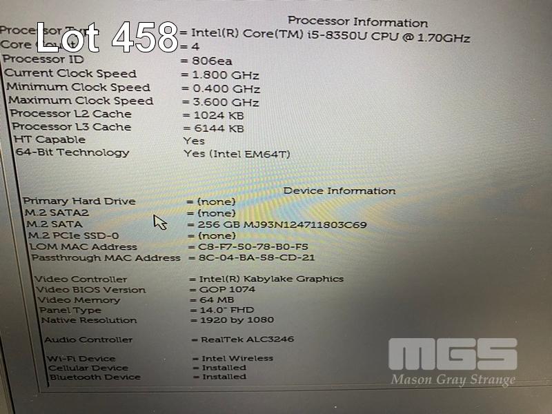 LAPTOP, DELL LATITUDE 5490, CORE i5 8350U (8TH GEN) @ 1.7GHz, 8GB DDR4 RAM, 256GB M.2 SSD, 14" WIDESCREEN (1920x1080), INTEL UHD GRAPHICS 620, Wi-Fi, CELLUAR, BLUETOOTH, WINDOWS 11 PRO INSTALLED (NO POWER SUPPLY) S/N:J0D0QV2