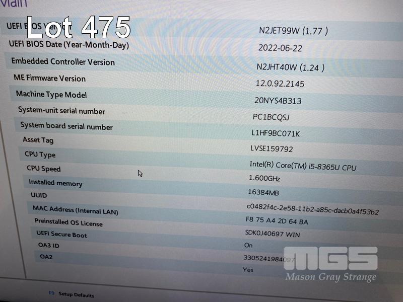 LAPTOP, LENOVO THINKPAD T490s, TYPE 20NY, CORE i5 8365U (8TH GEN) @ 1.6GHz, 16GB DDR4 RAM, 256GB NVMe M.2 SSD, 14" TOUCHSCREEN (1920x1080), INTEL HD VIDEO, Wi-Fi, BLUETOOTH, WINDOWS 11 PRO INSTALLED (NO USB-C POWER SUPPLY) (NOTE: MARKS ON SCREEN) S/N:PC1BCQSJ