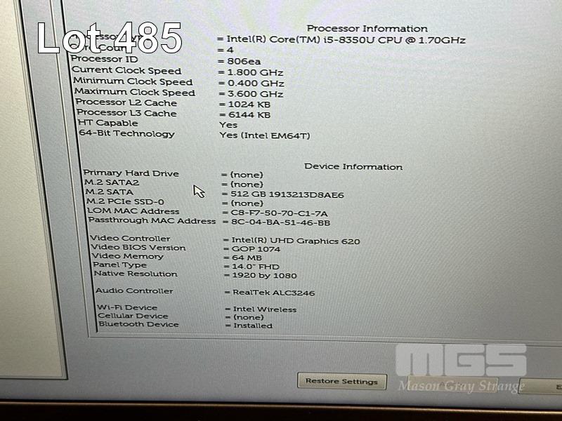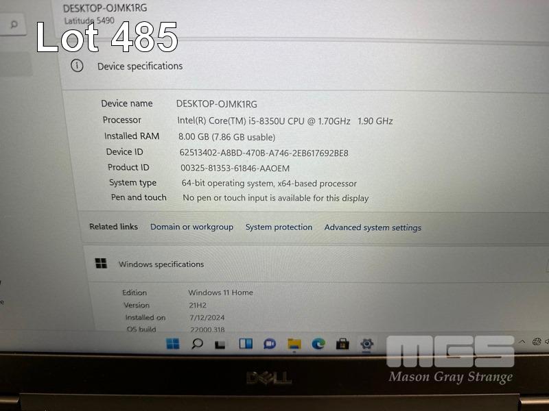 LAPTOP, DELL LATITUDE 5490, CORE i5 8350U (8TH GEN) @ 1.7GHz, 8GB DDR4 RAM, 512GB M.2 SSD, 14" WIDESCREEN (1920x1080), INTEL UHD GRAPHICS 620, Wi-Fi, BLUETOOTH, WINDOWS 11 HOME INSTALLED & POWER SUPPLY S/N:1PYHQV2