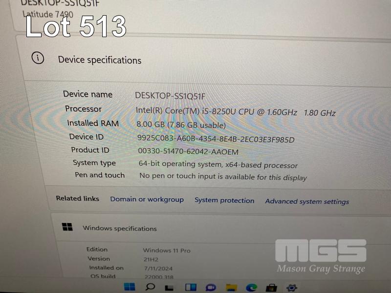 LAPTOP, DELL LATITUDE 7490, CORE i5 8250U (8TH GEN) @ 1.6GHz, 8GB DDR4 RAM, 256GB M.2 SSD, 14" WIDESCREEN (1920x1080), INTEL UHD GRAPHICS 620, Wi-Fi, CELLULAR, BLUETOOTH, WINDOWS 11 PRO INSTALLED (NO POWER SUPPLY) S/N:FMT8LQ2