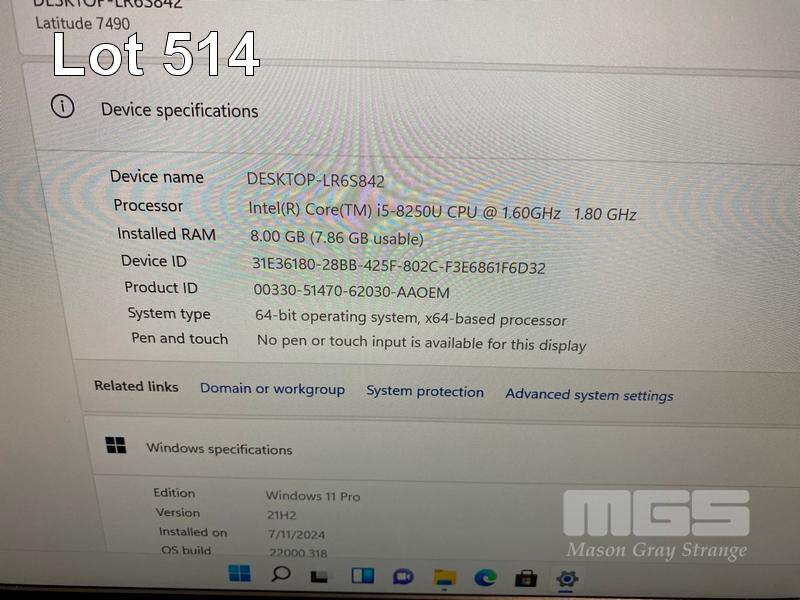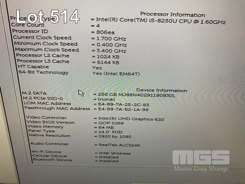 LAPTOP, DELL LATITUDE 7490, CORE i5 8250U (8TH GEN) @ 1.6GHz, 8GB DDR4 RAM, 256GB M.2 SSD, 14" WIDESCREEN (1920x1080), INTEL UHD GRAPHICS 620, Wi-Fi, CELLULAR, BLUETOOTH, WINDOWS 11 PRO INSTALLED (NO POWER SUPPLY) S/N:HCZ9LQ2