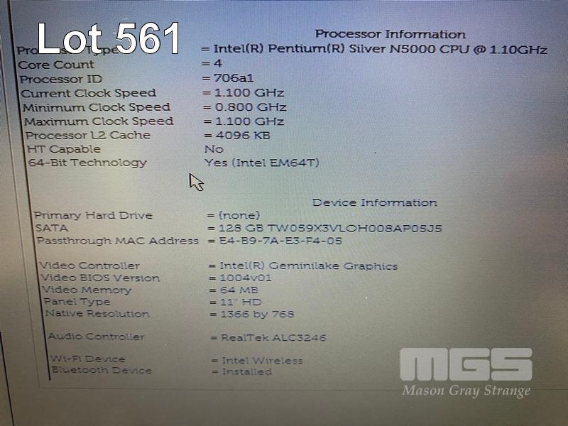 LAPTOP, DELL LATITUDE 3190, PENTIUM SILVER N5000 @ 1.1GHz, 4GB DDR4 RAM, 128GB M.2 SSD, 11.6" WIDESCREEN (1366x768), INTEL UHD GRAPHICS 605, Wi-Fi, BLUETOOTH, WINDOWS 11 PRO EDUCATION INSTALLED & POWER SUPPLY S/N:F6W66S2