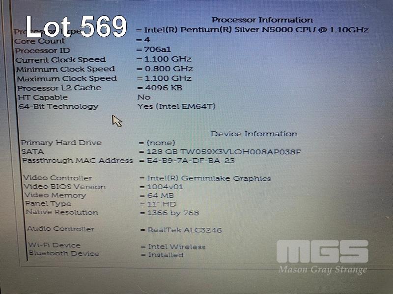 LAPTOP, DELL LATITUDE 3190, PENTIUM SILVER N5000 @ 1.1GHz, 4GB DDR4 RAM, 128GB M.2 SSD, 11.6" WIDESCREEN (1366x768), INTEL UHD GRAPHICS 605, Wi-Fi, BLUETOOTH, WINDOWS 11 PRO EDUCATION INSTALLED & POWER SUPPLY S/N:4WJ76S2