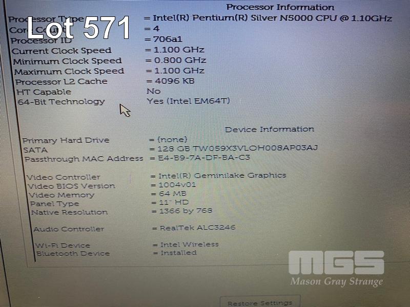 LAPTOP, DELL LATITUDE 3190, PENTIUM SILVER N5000 @ 1.1GHz, 4GB DDR4 RAM, 128GB M.2 SSD, 11.6" WIDESCREEN (1366x768), INTEL UHD GRAPHICS 605, Wi-Fi, BLUETOOTH, WINDOWS 11 PRO EDUCATION INSTALLED & POWER SUPPLY S/N:40G76S2