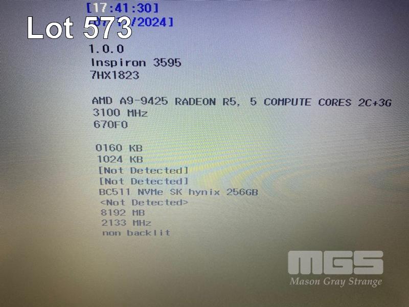 LAPTOP, DELL INSPIRON 3595, AMD A9-9425 RADEON R5 @ 3.1GHz, 8GB RAM, 256GB NVMe M.2 SSD, 15.6" WIDESCREEN, Wi-Fi, BLUETOOTH, WINDOWS 10 HOME INSTALLED & POWER SUPPLY S/N:7HX1823