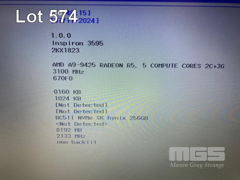 LAPTOP, DELL INSPIRON 3595, AMD A9-9425 RADEON R5 @ 3.1GHz, 8GB RAM, 256GB NVMe M.2 SSD, 15.6" WIDESCREEN, Wi-Fi, BLUETOOTH, WINDOWS 10 HOME INSTALLED & POWER SUPPLY S/N:2KX1823