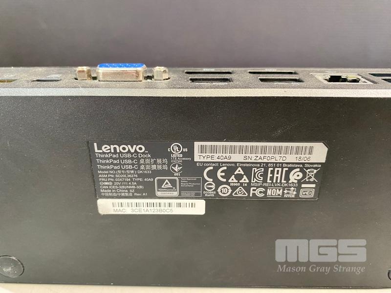 LENOVO THINKPAD USB-C DOCK, MODEL DK1633, TYPE 40A9 WITH 90W POWER SUPPLY & USB-C CABLE