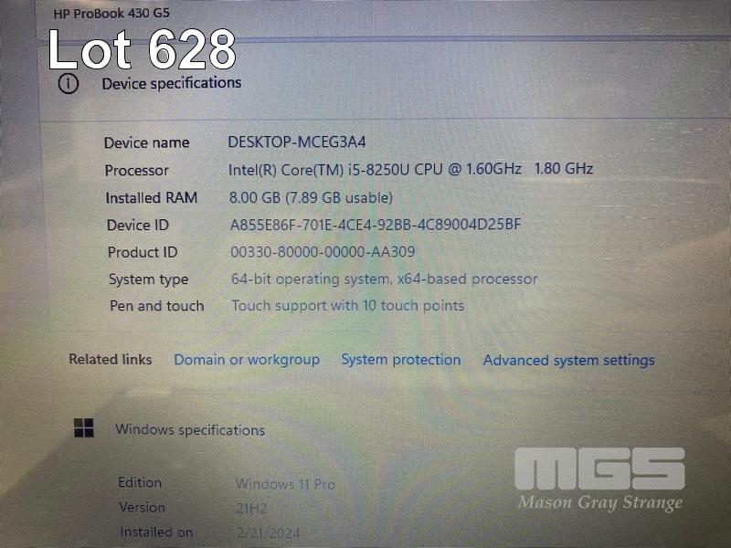 LAPTOP, HP PROBOOK 430 G5, CORE i5 8250U (8TH GEN) @ 1.6GHz, 8GB DDR4 RAM, 128GB M.2 SSD, 13.3" TOUCHSCREEN (1366x768), INTEL UHD GRAPHICS 620, Wi-Fi, BLUETOOTH, WINDOWS 11 PRO INSTALLED (NO POWER SUPPLY) (NOTE: MINOR DAMAGE TO CASING) S/N:5CD8496K3D