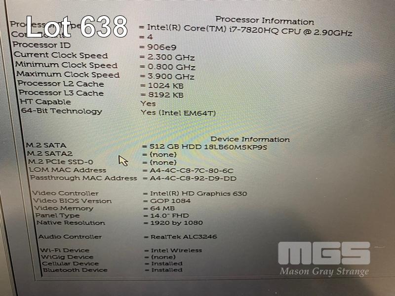 LAPTOP, DELL LATITUDE 5480, CORE i7 7820HQ (7TH GEN) @ 2.9GHz, 32GB DDR4 RAM, 512GB M.2 SSD, 14" WIDESCREEN (1920x1080), 2GB NVIDIA GEFORCE 930MX VIDEO, INTEL HD GRAPHICS 630, Wi-Fi, CELLULAR, BLUETOOTH, WINDOWS 10 PRO INSTALLED (NO POWER SUPPLY) S/N:98PV3M2