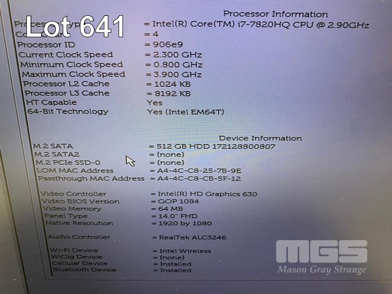 LAPTOP, DELL LATITUDE 5480, CORE i7 7820HQ (7TH GEN) @ 2.9GHz, 16GB DDR4 RAM, 512GB M.2 SSD, 14" WIDESCREEN (1920x1080), 2GB NVIDIA GEFORCE 930MX VIDEO, INTEL HD GRAPHICS 630, Wi-Fi, CELLULAR, BLUETOOTH, WINDOWS 10 PRO INSTALLED (NO POWER SUPPLY) (NOTE: DEEP SCRATCHES ON SCREEN) S/N:9CNLBH2