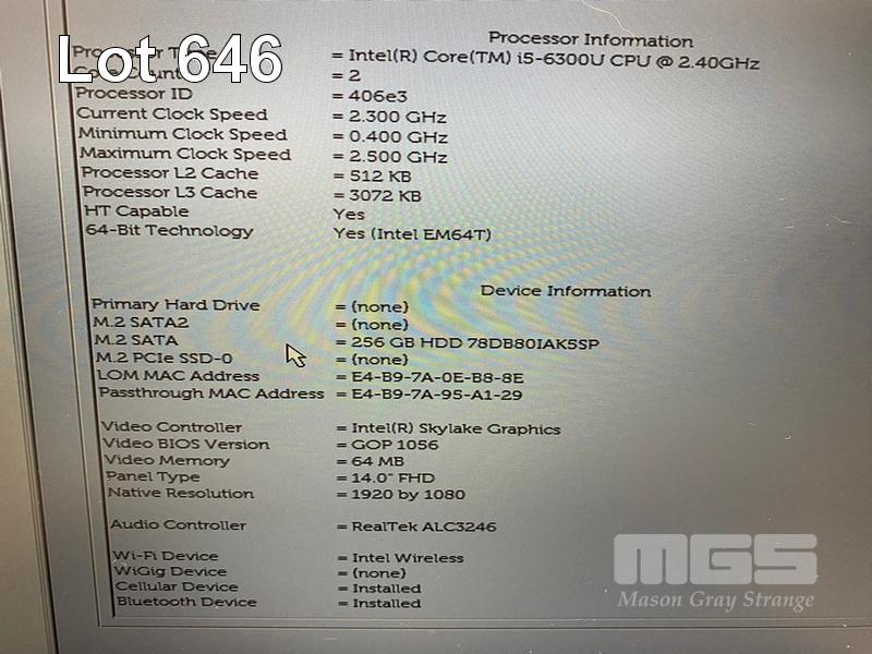 LAPTOP, DELL LATITUDE 5480, CORE i5 6300U (6TH GEN) @ 2.4GHz, 8GB DDR4 RAM, 256GB M.2 SSD, 14" WIDESCREEN (1920x1080), INTEL HD GRAPHICS 520, Wi-Fi, CELLULAR, BLUETOOTH, WINDOWS 10 PRO INSTALLED (NO POWER SUPPLY) (NOTE: SCRATCH ON SCREEN) S/N:6Y8NRQ2