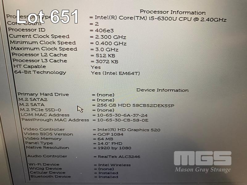 LAPTOP, DELL LATITUDE 5480, CORE i5 6300U (6TH GEN) @ 2.4GHz, 8GB DDR4 RAM, 256GB M.2 SSD, 14" WIDESCREEN (1920x1080), INTEL HD GRAPHICS 520, Wi-Fi, CELLULAR, BLUETOOTH, WINDOWS 10 PRO INSTALLED (NO POWER SUPPLY) S/N:1F2L4Q2