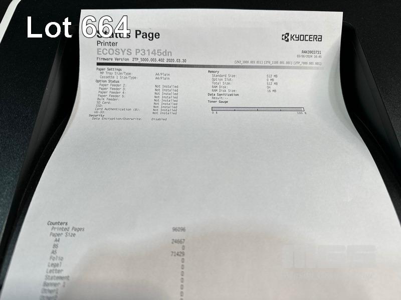 PRINTER, KYOCERA ECOSYS P3145dn LASER, 96,096 PAGES (TEST PAGE ATTACHED) S/N:R4K0903731