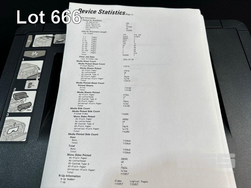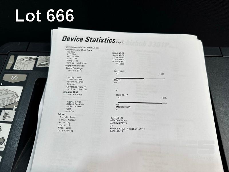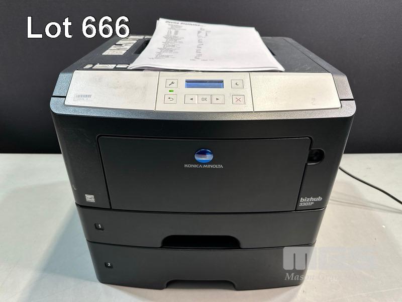PRINTER, KONICA MINOLTA BIZHUB 3301P LASER, 115,949 PAGES (TEST PAGE ATTACHED) S/N:45147PLM3NDMN