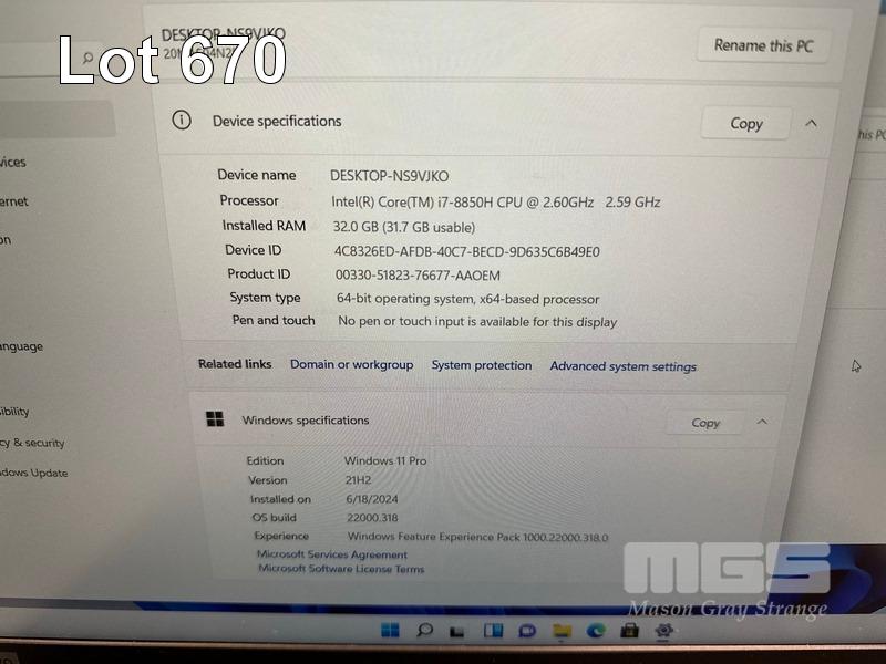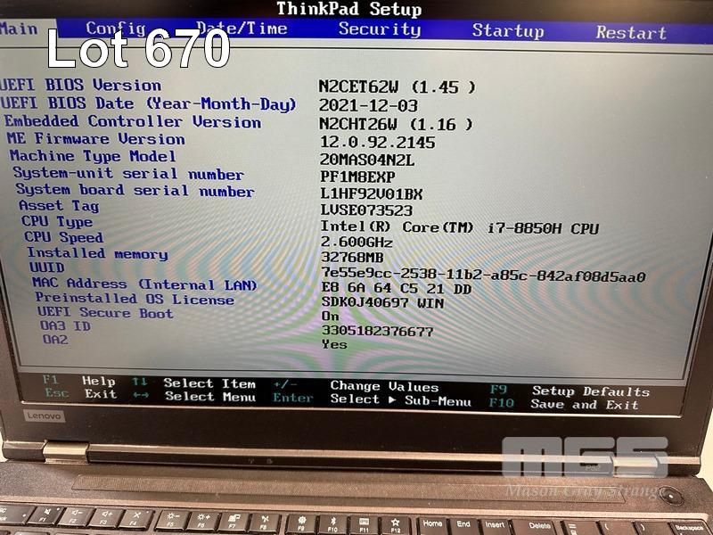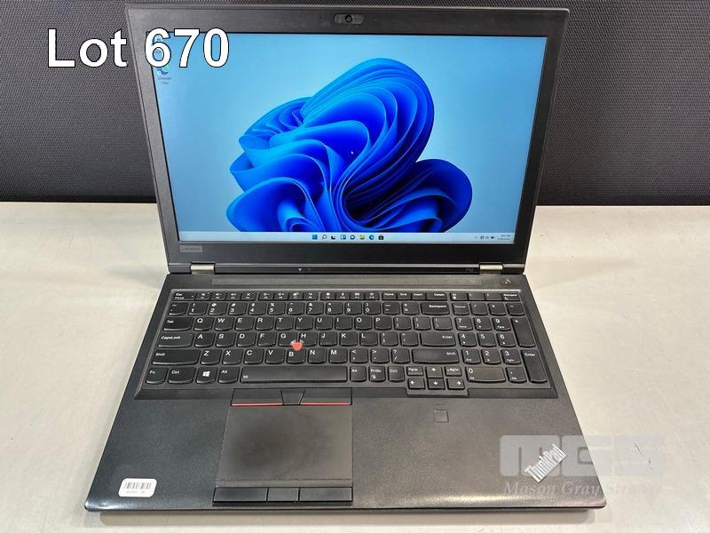 LAPTOP, LENOVO THINKPAD P52 MOBILE WORKSTATION, TYPE 20MA, CORE i7 8850H (8TH GEN) @ 2.6GHz, 32GB DDR4 RAM, 512GB NVMe M.2 SSD, 15.6" WIDESCREEN (1920x1080), 4GB NVIDIA QUADRO P2000 VIDEO, Wi-Fi, BLUETOOTH, WINDOWS 11 PRO INSTALLED (NO POWER SUPPLY) (NOTE: MARKS ON SCREEN) S/N:PF1M8EXP