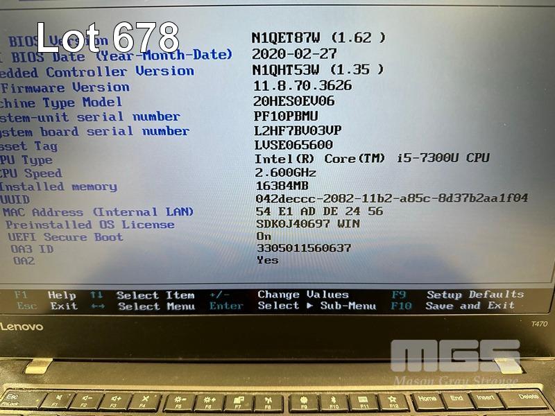 LAPTOP, LENOVO THINKPAD T470, TYPE 20HE, CORE i5 7300U (7TH GEN) @ 2.6GHz, 16GB DDR4 RAM, 512GB NVMe M.2 SSD, 14" WIDESCREEN (1920x1080), INTEL HD VIDEO, Wi-Fi, BLUETOOTH, WINDOWS 10 PRO INSTALLED & POWER SUPPLY (NOTE: BATTERY NOT CHARGING, MINOR MARKS ON SCREEN) S/N:PF10PBMU