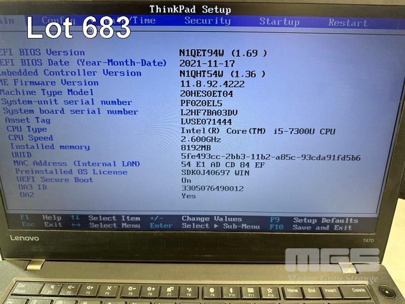 LAPTOP, LENOVO THINKPAD T470, TYPE 20HE, CORE i5 7300U (7TH GEN) @ 2.6GHz, 8GB DDR4 RAM, 256GB NVMe M.2 SSD, 14" WIDESCREEN (1366x768), INTEL HD VIDEO, Wi-Fi, BLUETOOTH, WINDOWS 10 PRO INSTALLED & POWER SUPPLY (NOTE: MARKS ON SCREEN) S/N:PF0Z0EL5
