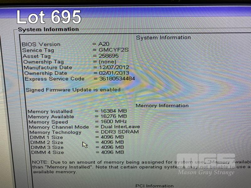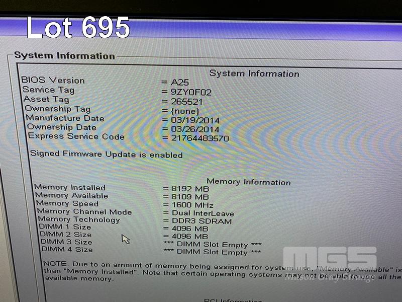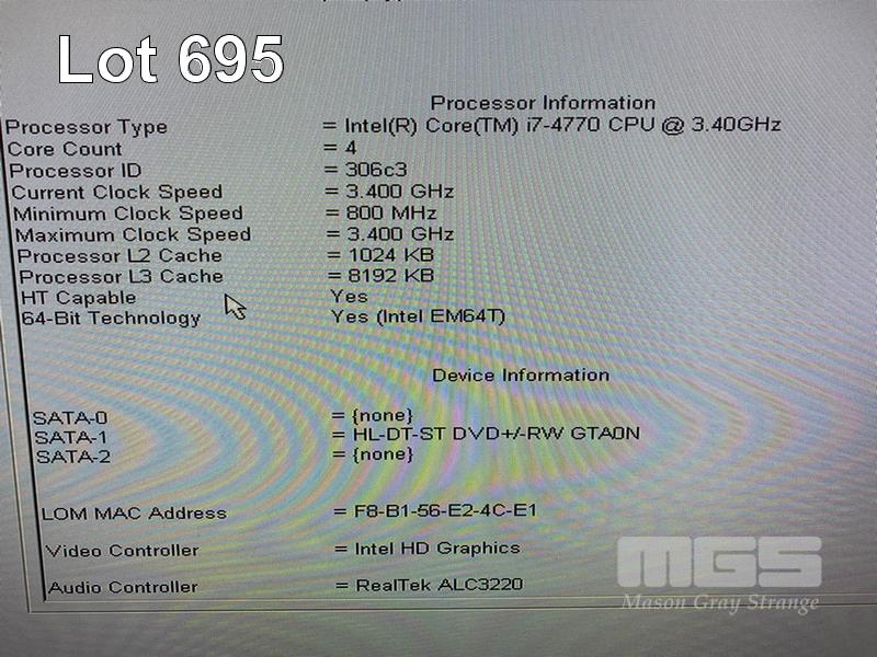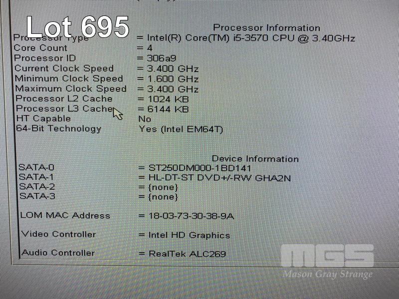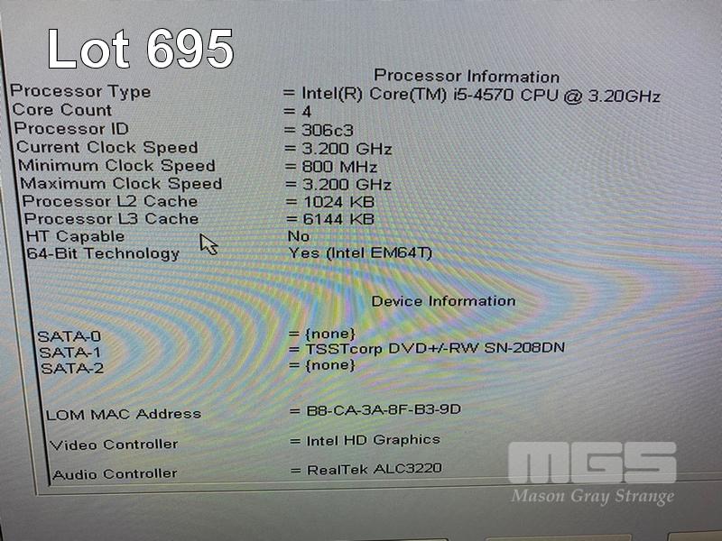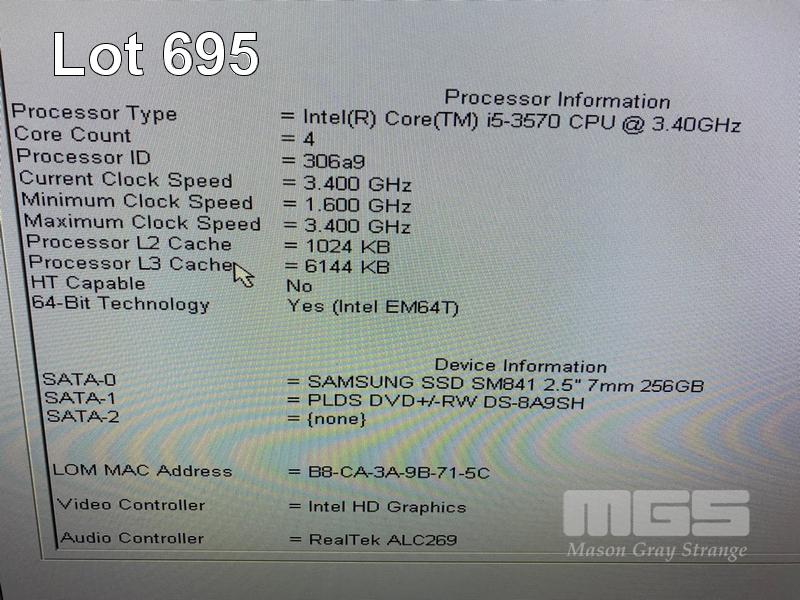6 x DESKTOP PCS INC. - DELL OPTIPLEX 9020 SFF, CORE i5 4570 @ 3.2GHz, 8GB RAM, 128GB SSD - DELL OPTIPLEX 9020 SFF, CORE i5 4570 @ 3.2GHz, 8GB RAM, NO HDD - DELL OPTIPLEX 9010 SFF, CORE i5 3570 @ 3.4GHz, 8GB RAM, 256GB SSD - DELL OPTIPLEX 9010 SFF, CORE i5 3570 @ 3.4GHz, 8GB RAM, 128GB SSD - DELL OPTIPLEX 9020 SFF, CORE i7 4770 @ 3.4GHz, 4GB RAM, NO HDD - DELL OPTIPLEX 9010 TOWER, CORE i5 3570 @ 3.4GHz, 16GB RAM, 250GB HDD (NO CABLES) S/N:9ZY0F02, B7LCHY1, H5B1GY1, 239M8X1, DDMQQ02, GMCYF2S