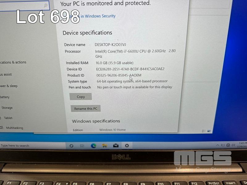 LAPTOP, DELL LATITUDE 7480, CORE i7 6600U (6TH GEN) @ 2.6GHz, 16GB DDR4 RAM, 512GB M.2 SSD, 14" WIDESCREEN (1920x1080), INTEL HD GRAPHICS 520, Wi-Fi, BLUETOOTH, WINDOWS 10 HOME INSTALLED & POWER SUPPLY (NOTE: BATTERY NOT HOLDING CHARGE) S/N:J350NH2