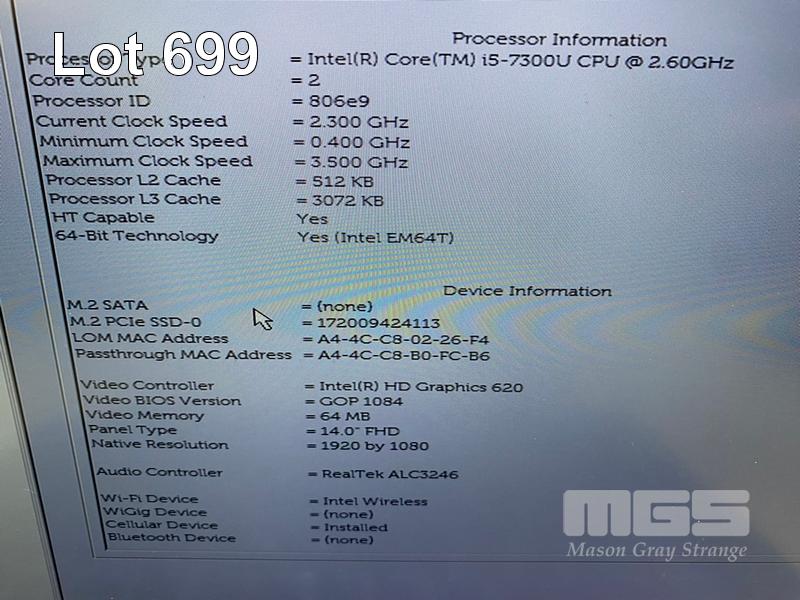 LAPTOP, DELL LATITUDE 7480, CORE i5 7300U (7TH GEN) @ 2.6GHz, 16GB DDR4 RAM, 256GB NVMe M.2 SSD, 14" WIDESCREEN (1920x1080), INTEL HD GRAPHICS 620, Wi-Fi, CELLULAR, BLUETOOTH, WINDOWS 10 PRO INSTALLED (NO POWER SUPPLY) S/N:H8WW7H2