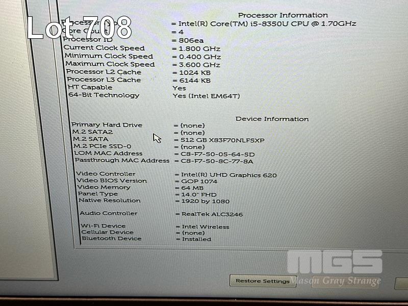 LAPTOP, DELL LATITUDE 5490, CORE i5 8350U (8TH GEN) @ 1.7GHz, 8GB DDR4 RAM, 512GB M.2 SSD, 14" WIDESCREEN (1920x1080), INTEL UHD GRAPHICS 620, Wi-Fi, BLUETOOTH, WINDOWS 11 HOME INSTALLED & POWER SUPPLY (NOTE: KEYBOARD FAULT - KEYS HARD TO PRESS, MARKS ON SCREEN) S/N:6T3G7S2