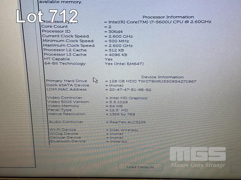 LAPTOP, DELL LATITUDE E7250, CORE i7 5600U (5TH GEN) @ 2.6GHz, 16GB DDR3 RAM, 128GB SSD, 12.5" WIDESCREEN (1366x768), INTEL HD VIDEO, Wi-Fi, BLUETOOTH, WINDOWS 10 HOME INSTALLED, DOCKING STATION & POWER SUPPLY (NOTE: SPOTS ON SCREEN) S/N:9H3Z262