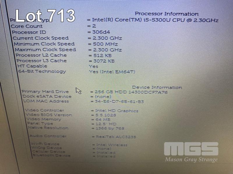 LAPTOP, DELL LATITUDE E7250, CORE i5 5300U (5TH GEN) @ 2.3GHz, 8GB DDR3 RAM, 256GB SSD, 12.5" WIDESCREEN (1366x768), INTEL HD VIDEO, Wi-Fi, CELLULAR, BLUETOOTH, WINDOWS 10 PRO INSTALLED (NO POWER SUPPLY) S/N:6DZLQ32