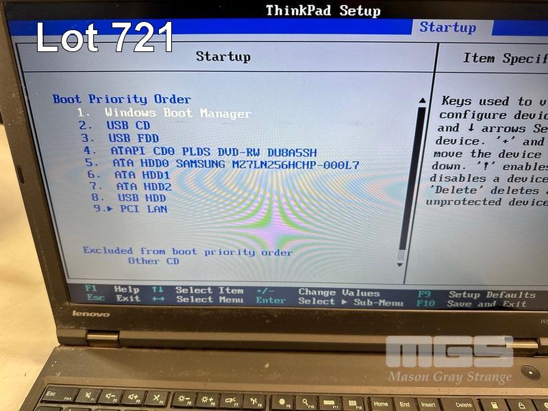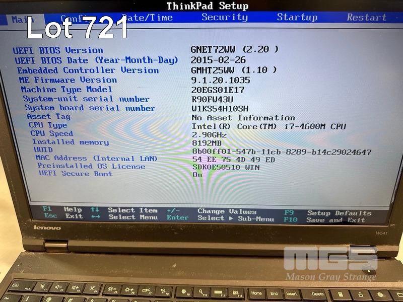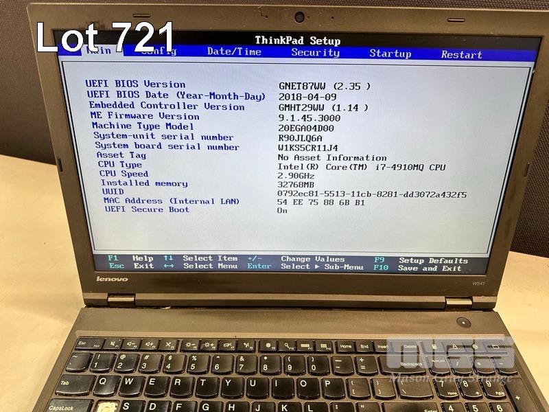 4 x LAPTOPS INC. - LENOVO THINKPAD W541, CORE i7 4910MQ @ 2.9GHz, 32GB RAM, NO HDD (NO "A" KEY) - LENOVO THINKPAD W541, CORE i7 4600M @ 2.9GHz, 8GB RAM, 256GB SSD (SCREEN FAULT, MINOR DAMAGE TO CASING) - LENOVO THINKPAD W541, NO RAM, NO HDD, NO BATTERY (MISSING BOTTOM COVER, NO DVD DRIVE, FAULTY) - LENOVO THINKPAD W541, NO RAM, NO HDD, NO KEYBOARD, NO BATTERY (NO POWER SUPPLIES) S/N:R90JLQ6A, R90FW43U, R90HJ5D3, R9025HRN