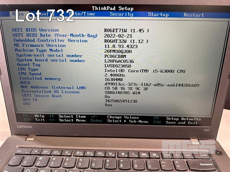 LAPTOP, LENOVO THINKPAD T460, TYPE 20FM, CORE i5 6300U (6TH GEN) @ 2.4GHz, 16GB DDR3 RAM, 256GB SSD, 14" WIDESCREEN (1920x1080), INTEL HD VIDEO, Wi-Fi, BLUETOOTH, WINDOWS 10 PRO INSTALLED & POWER SUPPLY (NOTE: MARKS ON SCREEN) S/N:PC0GCDBM