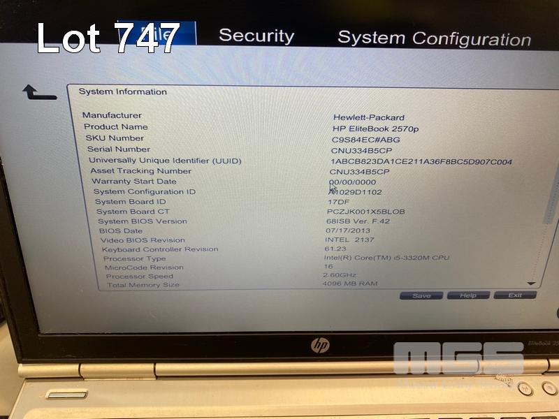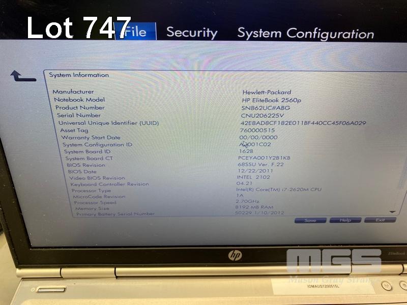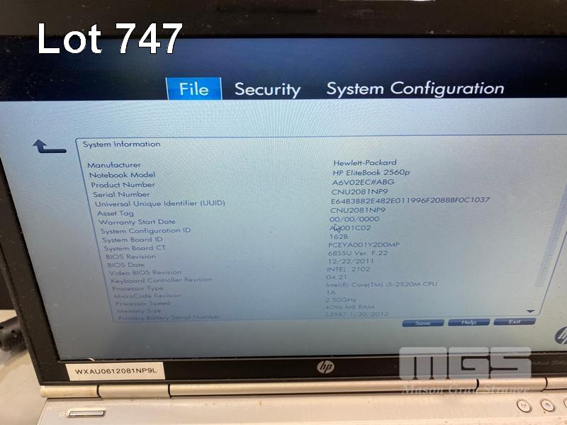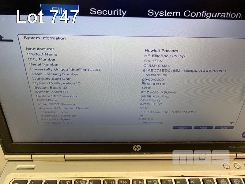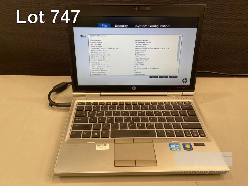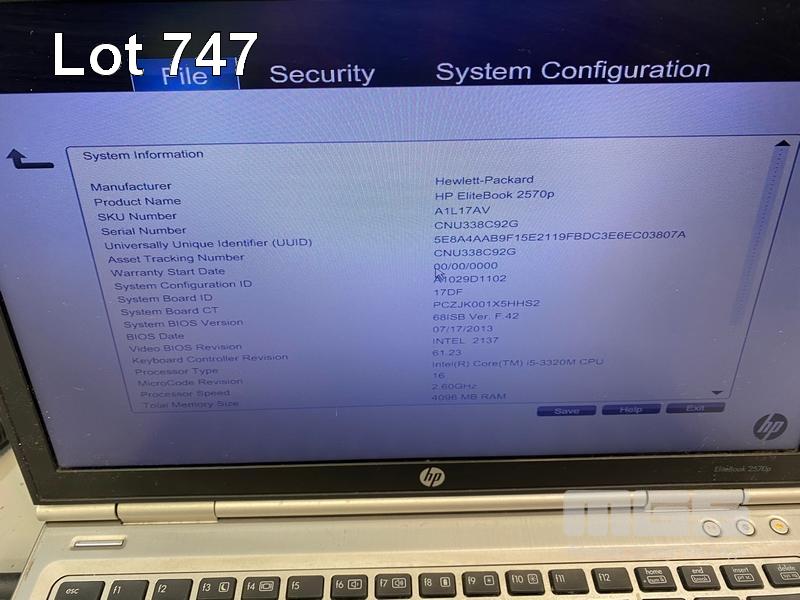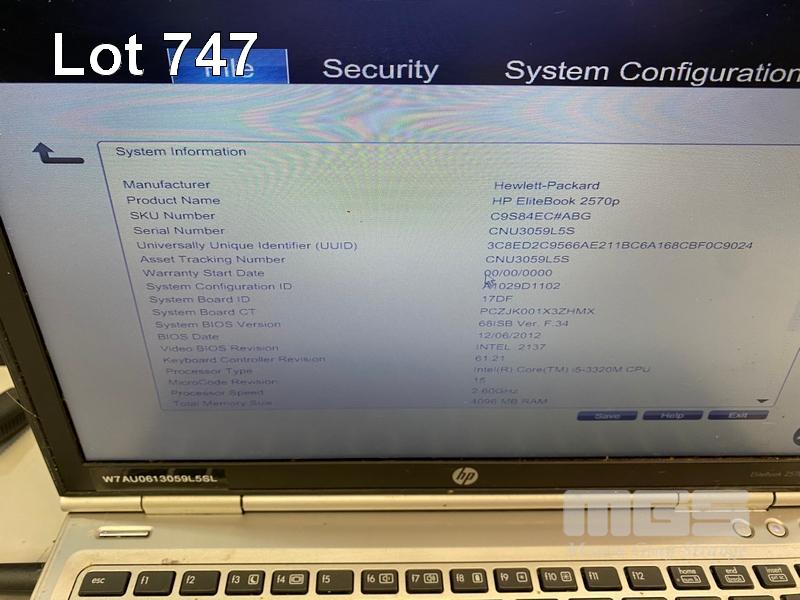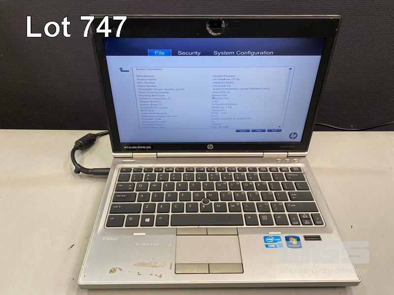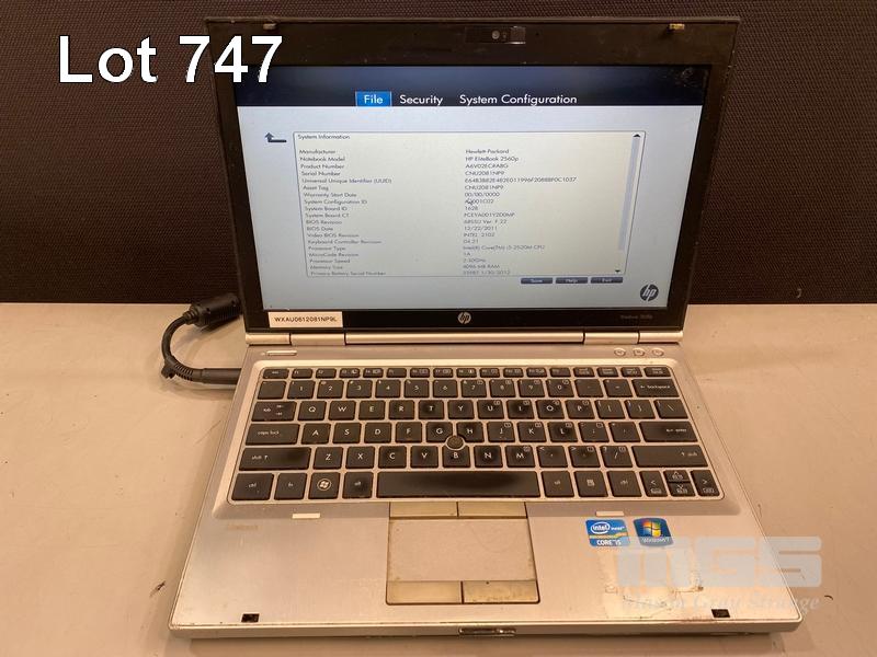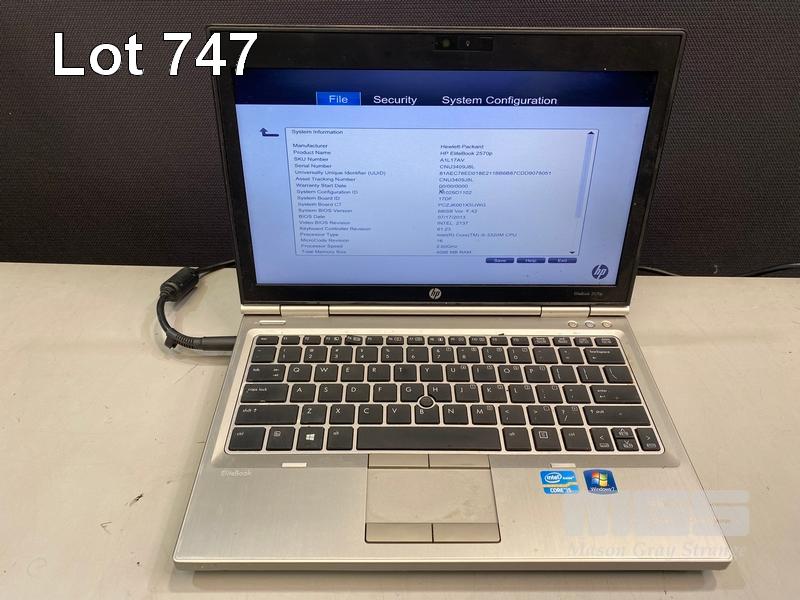 8 x LAPTOPS INC. - HP ELITEBOOK 2570p, CORE i5 3320M @ 2.6GHz, 4GB RAM, 256GB SSD (KEYBOARD FAULT) - HP ELITEBOOK 2570p, CORE i5 3320M @ 2.6GHz, 4GB RAM, 500GB HDD (KEYBOARD FAULT, NO BATTERY) - HP ELITEBOOK 2570p, CORE i5 3340M @ 2.7GHz, 16GB RAM, 256GB SSD - HP ELITEBOOK 2570p, CORE i5 3320M @ 2.6GHz, 4GB RAM, 500GB HDD (DAMAGED CASING, NO BATTERY) - HP ELITEBOOK 2570p, CORE i5 3320M @ 2.6GHz, 4GB RAM, 500GB HDD (KEYBOARD FAULT) - HP ELITEBOOK 2560p, CORE i7 2620M @ 2.7GHz, 8GB RAM, 320GB HDD (KEYBOARD FAULT) - HP ELITEBOOK 2560p, CORE i5 2520M @ 2.5GHz, 4GB RAM, 500GB HDD - HP ELITEBOOK 2560p, CORE i5 2520M @ 2.5GHz, 4GB RAM, 500GB HDD (NO POWER SUPPLIES) S/N:CNU334B5CP, CNU338C92G, CNU4049J9W, CNU3059L5S, CNU3409J8L, CNU206225V, CNU1480PZ8, CNU2081NP9