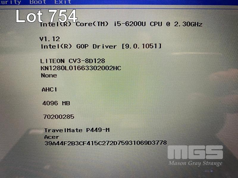 LAPTOP, ACER TRAVELMATE P449-M, CORE i5 6200U (6TH GEN) @ 2.3GHz, 4GB DDR4 RAM, 128GB M.2 SSD, 14" TOUCHSCREEN (1920x1080), INTEL HD GRAPHICS 520, Wi-Fi, BLUETOOTH, WINDOWS 10 HOME INSTALLED (NO POWER SUPPLY) (NOTE: MISSING SCREEN HINGE COVERS) S/N:70200285