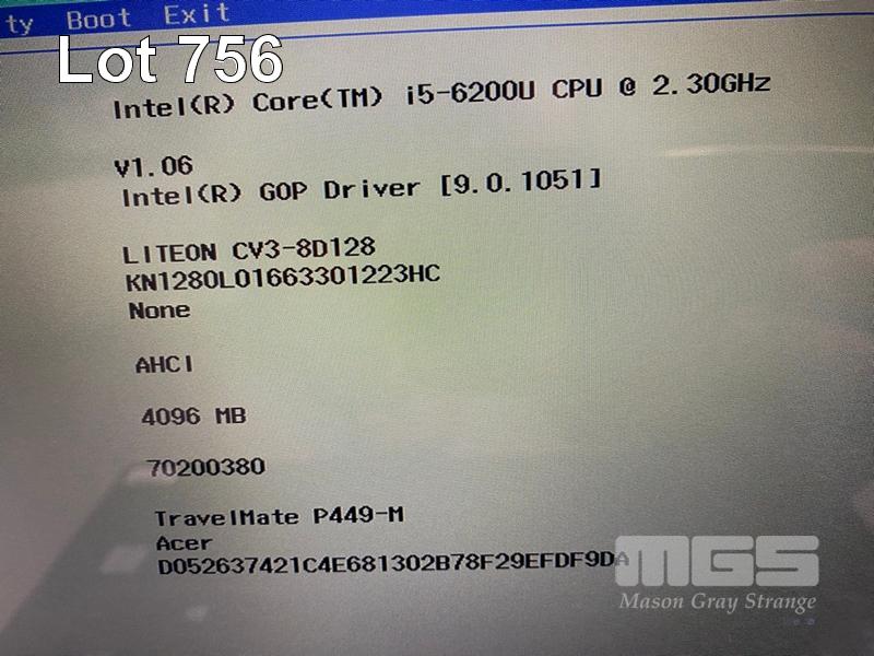 LAPTOP, ACER TRAVELMATE P449-M, CORE i5 6200U (6TH GEN) @ 2.3GHz, 4GB DDR4 RAM, 128GB M.2 SSD, 14" TOUCHSCREEN (1920x1080), INTEL HD GRAPHICS 520, Wi-Fi, BLUETOOTH, WINDOWS 10 HOME INSTALLED (NO POWER SUPPLY) (NOTE: DAMAGE TO CASING, MISSING SCREEN HINGE COVERS) S/N:70200380