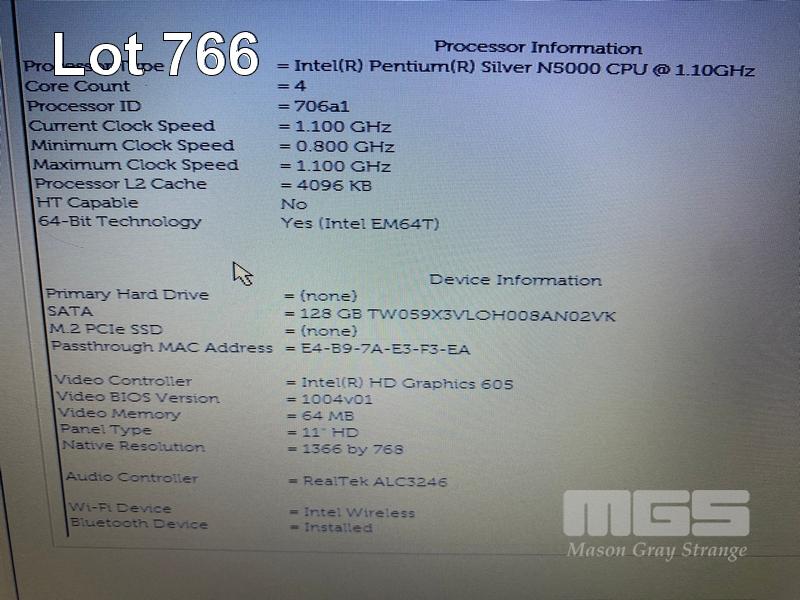 LAPTOP, DELL LATITUDE 3190, PENTIUM SILVER N5000 @ 1.1GHz, 4GB DDR4 RAM, 128GB M.2 SSD, 11.6" WIDESCREEN (1366x768), INTEL UHD GRAPHICS 605, Wi-Fi, BLUETOOTH, WINDOWS 11 PRO EDUCATION INSTALLED & POWER SUPPLY (NOTE: SCRATCH ON SCREEN, MISSING SCREEN HINGE COVER) S/N:CSJ56S2