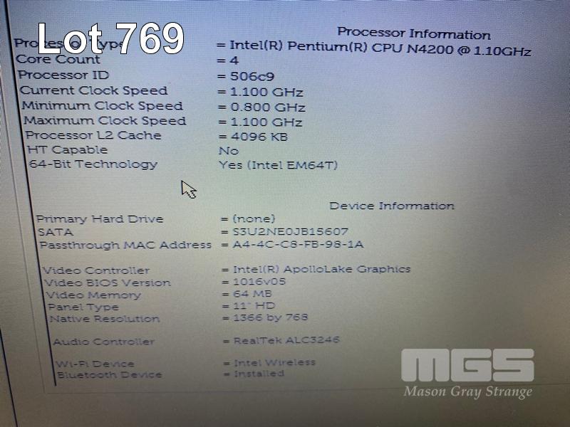 LAPTOP, DELL LATITUDE 3180, PENTIUM N4200 @ 1.1GHz, 4GB DDR3 RAM, 128GB M.2 SSD, 11.6" WIDESCREEN (1366x768), INTEL HD GRAPHICS, Wi-Fi, BLUETOOTH, WINDOWS 11 PRO EDUCATION INSTALLED & POWER SUPPLY (NOTE: SCRATCHES ON SCREEN, MISSING SCREEN HINGE COVER) S/N:DMTZ3M2