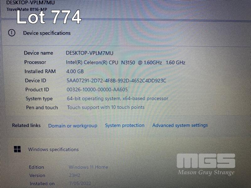 LAPTOP, ACER TRAVELMATE B116-MP, CELERON N3150 @ 1.6GHz, 4GB DDR3 RAM, 128GB SSD, 11.6" TOUCHSCREEN (1366x768), INTEL HD GRAPHICS, Wi-Fi, BLUETOOTH, WINDOWS 11 HOME INSTALLED & POWER SUPPLY (NOTE: BATTERY NOT CHARGING, MISSING "E" "T" "U" KEYS) S/N:54904708076