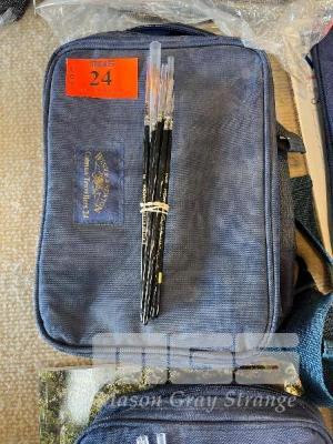 7 x ASSORTED ARTIST BRUSHES, SABLE HAIR WITH CARRY BAG