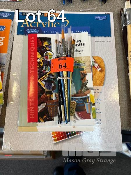 18 x ASSORTED ARTIST BRUSHES, SYNTHETIC & SABLE, WITH INSTRUCTIONAL BOOKS