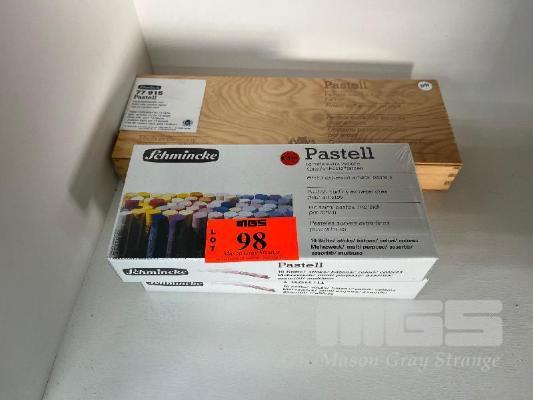 2 x 10 COLOUR SCHMINCKE PASTEL SETS WITH WOODEN CARRY CASE