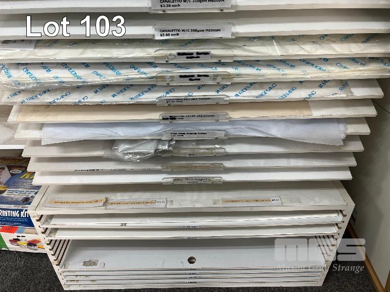 LARGE QUANTITY WATER COLOUR PAPER WITH STORAGE RACK, 830 x 600 x 1350mm