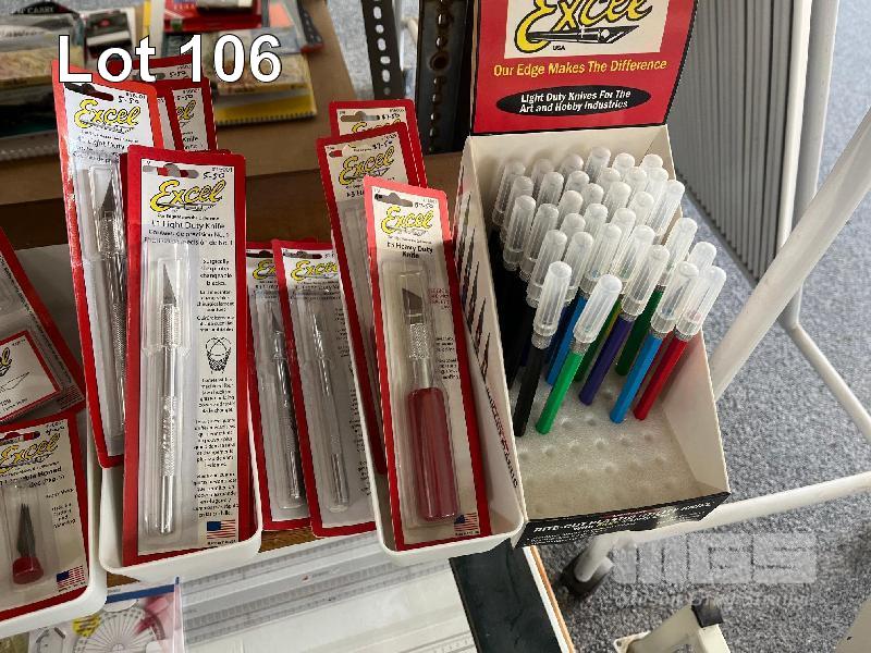 CONTENTS OF SHELF, RULERS, STAPLERS, UTILITY KNIVES, ETC.