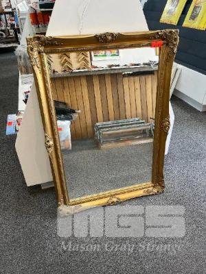 FRAMED WALL MOUNT MIRROR, GOLD TIMBER, 750 x 1060mm
