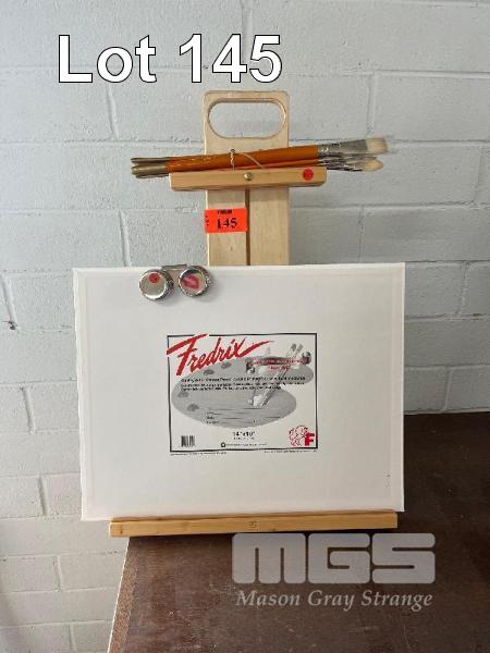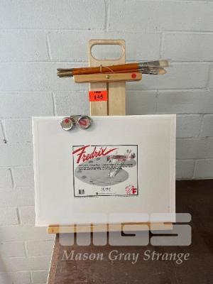 ART SPECTRUM BENCH TOP EASEL WITH 7 x BRUSHES, NATURAL, 1 x FREDRIX CANVAS PANEL, 14 x 18"