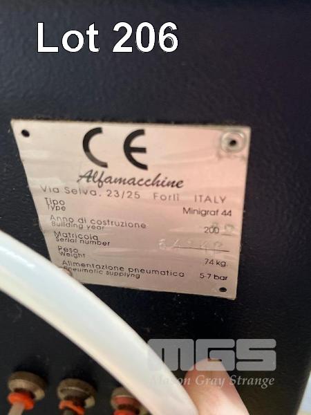 ALFA MACCHINE PNEUMATIC V NAILER FRAME JOINER & TABLE, MOD: MINIGRAF44, DOM: 2012, 8m AIR LINE INCLUDED