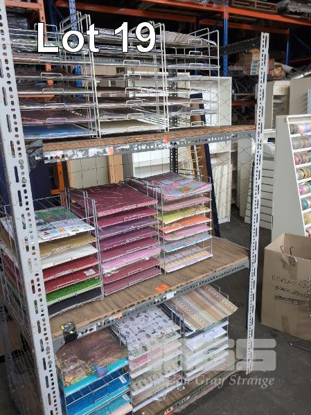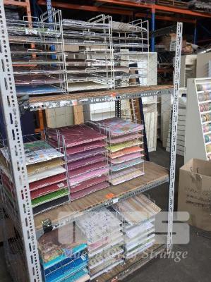 9 X CRAFT PAPER DISPLAY RACKS & CONTENTS. 3 X SHELVES.